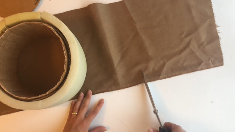 Toliau paruoškite dugną. Kad būtų patogiau, iš anksto iškirpkite audinį, tada sulenkite ir suklijuokite su sukarpytu audiniu. Iš vidaus tinkamu audiniu išklijuokite cilindro vidų.