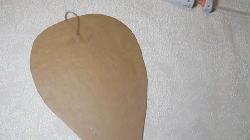 Iš kartono iškirpkite didelę lašo formą ir iš abiejų pusių apvyniokite ją paprastu pakavimo popieriumi.