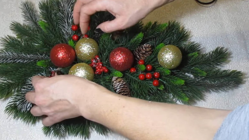 Šią kompoziciją taip pat papuoškite kankorėžiais.
