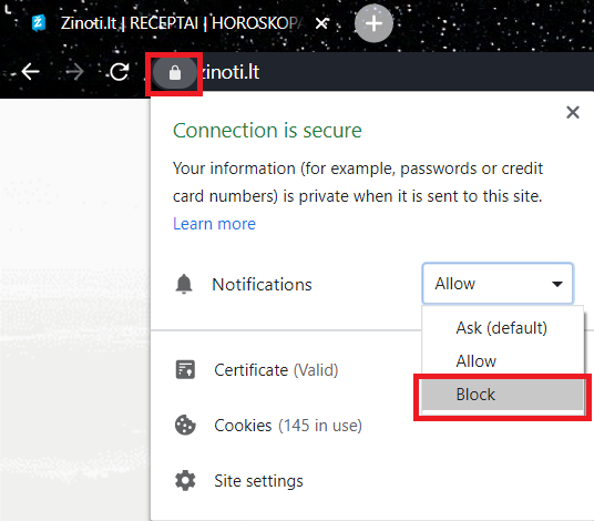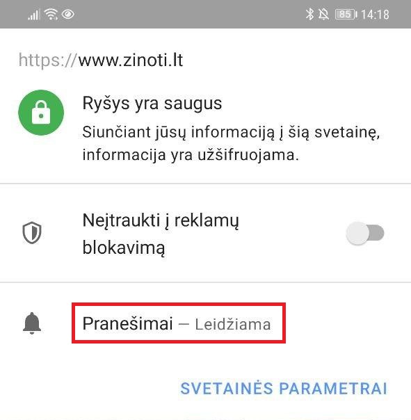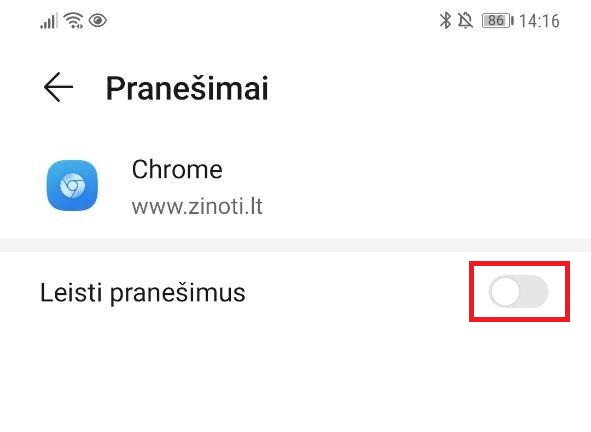 Instrukcijos, kaip pašalinti „Push Notifications” pranešimus iš Zinoti.lt portalo Google Chrome naršyklėje: