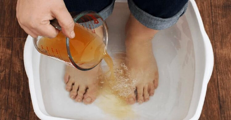 Jei ketinate gaminti vonią tik kojoms, paimkite 2 šaukštus sodos, 1 šaukštą druskos, 1 šaukštą obuolių sidro acto ir 2 lašus eterinio aliejaus.