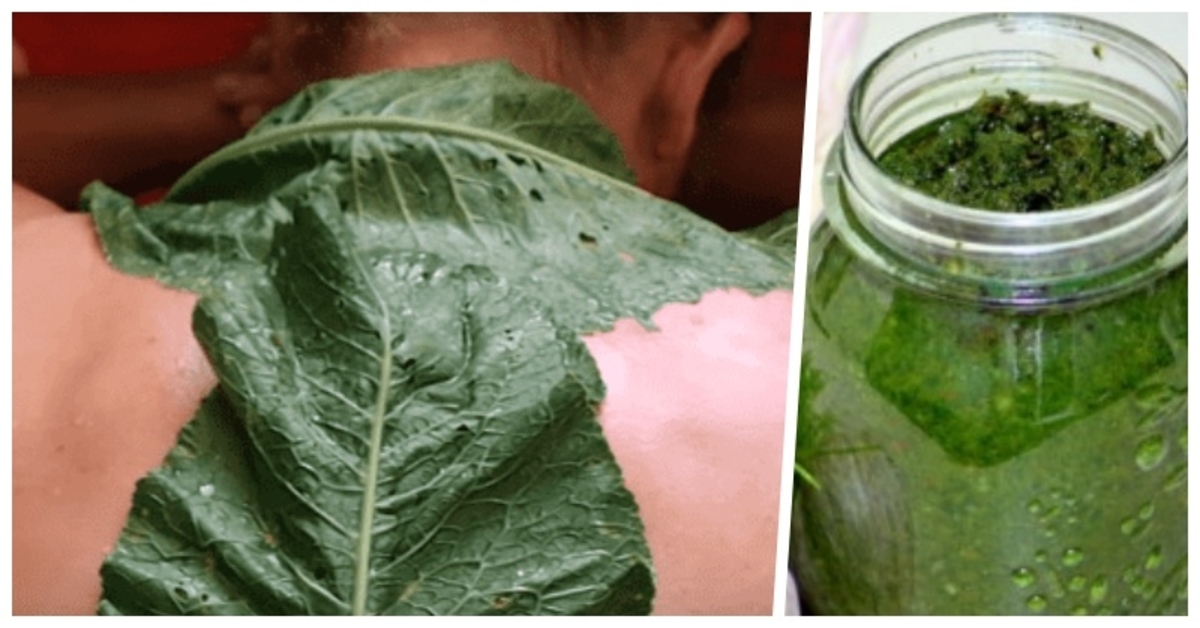 Reikės dviejų šviežių ir didelių krienų lapų. Prieš miegą, pamerkite juos iš abiejų pusių į verdantį vandenį ir iš karto dėkite ant nugaros, kad liestų ir kaklą. Uždenkite audiniu.