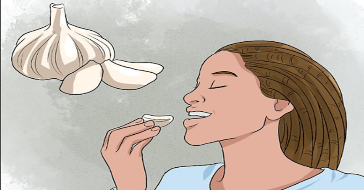 Paimkite nedidelę česnako skiltelę, įdėkite ją į burną ir „nuplaukite” seilėmis, palaikykite burnoje. Tai atlikite per 30 minučių atsikėlę ryte.