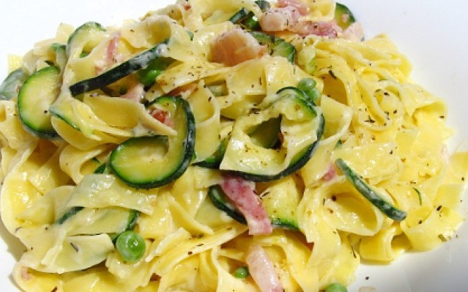 Makaronai su cukinijomis, šonine ir grietinėle. Užtruksite vos 20 minučių, ir fantastiški pietūs bus paruošti!