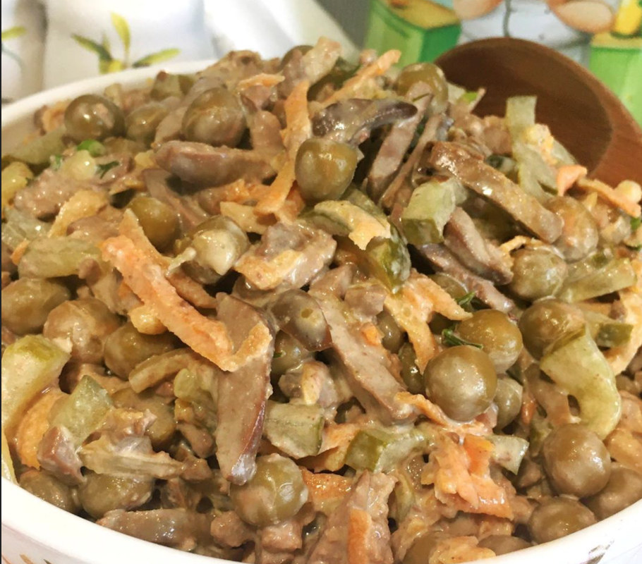 Šventinė žirnelių ir kepenėlių mišrainė