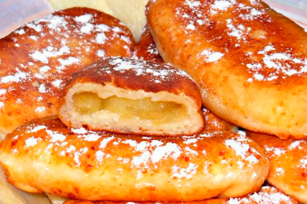 Varškės tešlos pyragėliai su obuoliais, iškepti keptuvėje