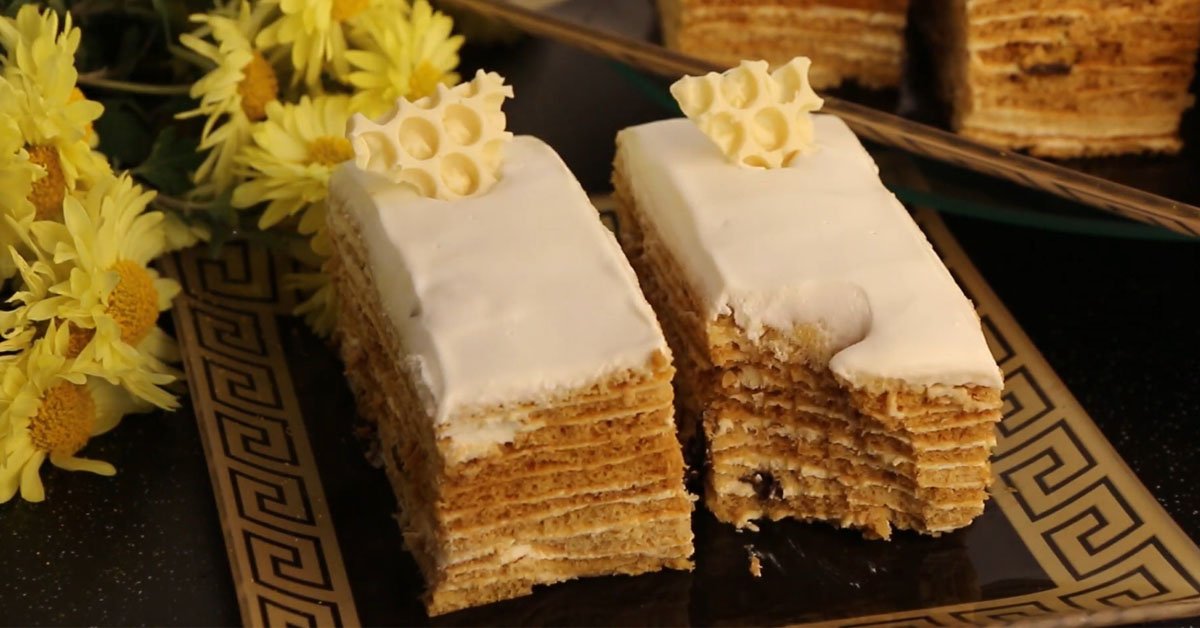 Medaus tortas su grietine. Nustebinkite savo artimuosius!