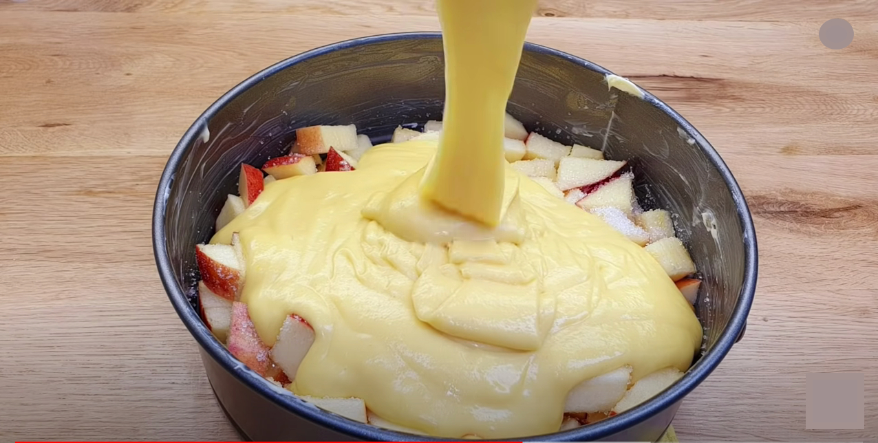 Sumaišykite ingredientus, supilkite į kepimo skardą ir minkštas, jogurtinis obuolių pyragas bus paruoštas!