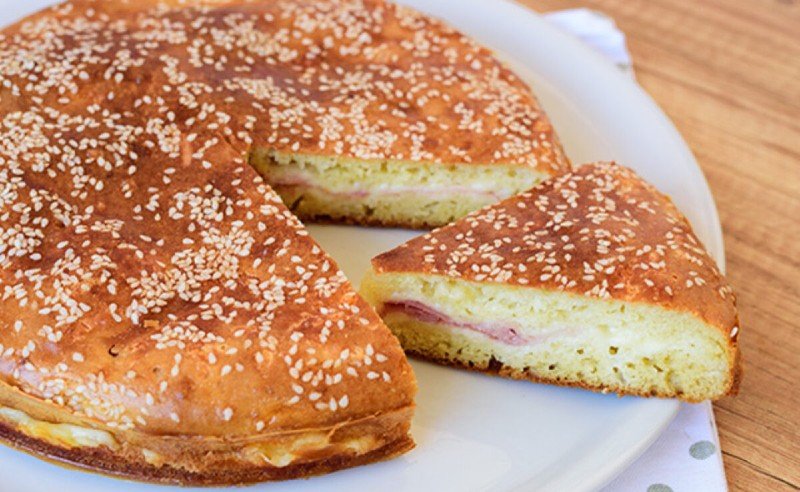 Greitai paruošiamas pyragas su kietuoju sūriu ir kumpiu