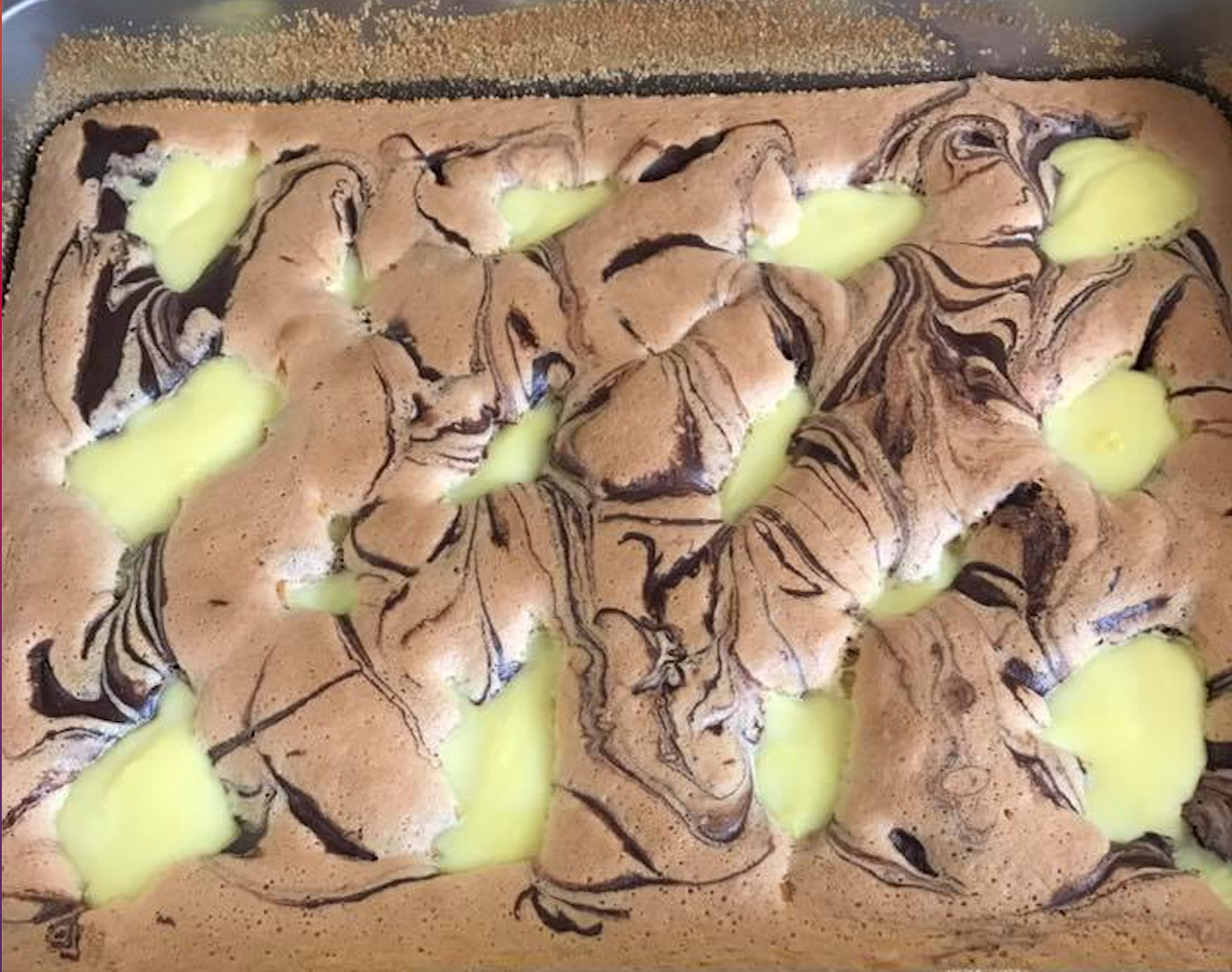 Šis plikytas pyragas su pudingo kremu jums tikrai patiks! Jis ne tik atrodo viliojančiai, bet ir yra labai skanus!