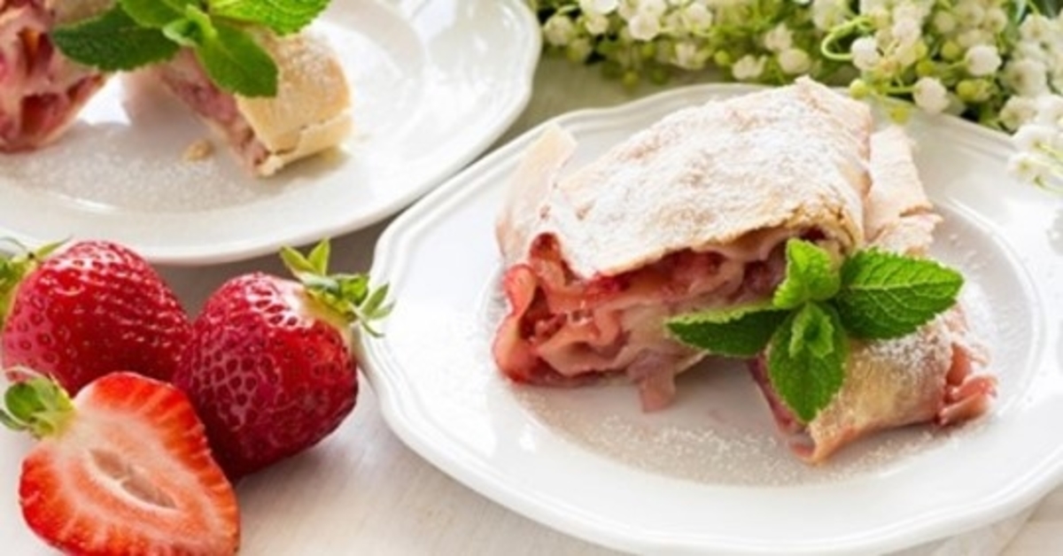 Neįtikėtino skonio štrudelis iš šviežių braškių derliaus. Išbandykite receptą!