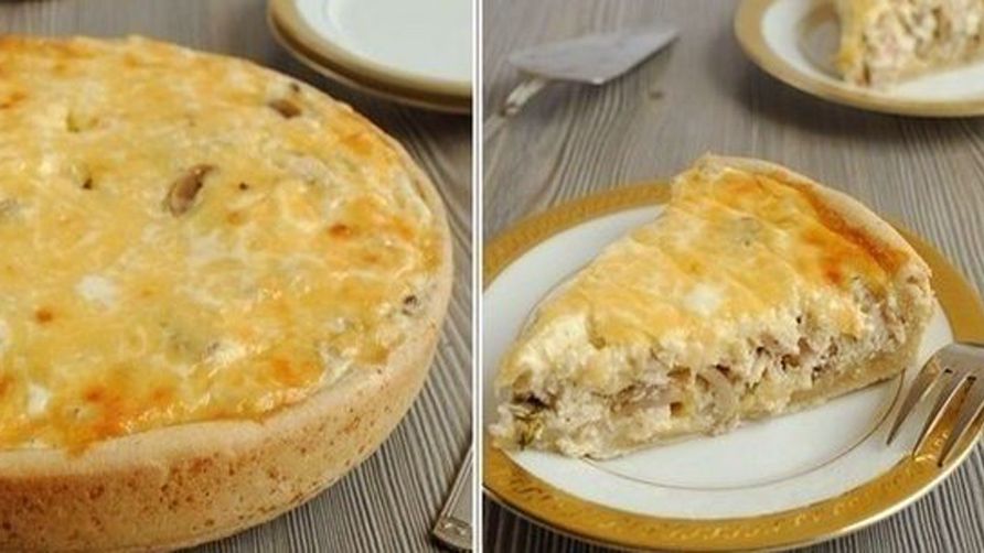 Skanus ir aromatingas grietinės pyragas su grybais ir vištiena. Paruošite labai greitai