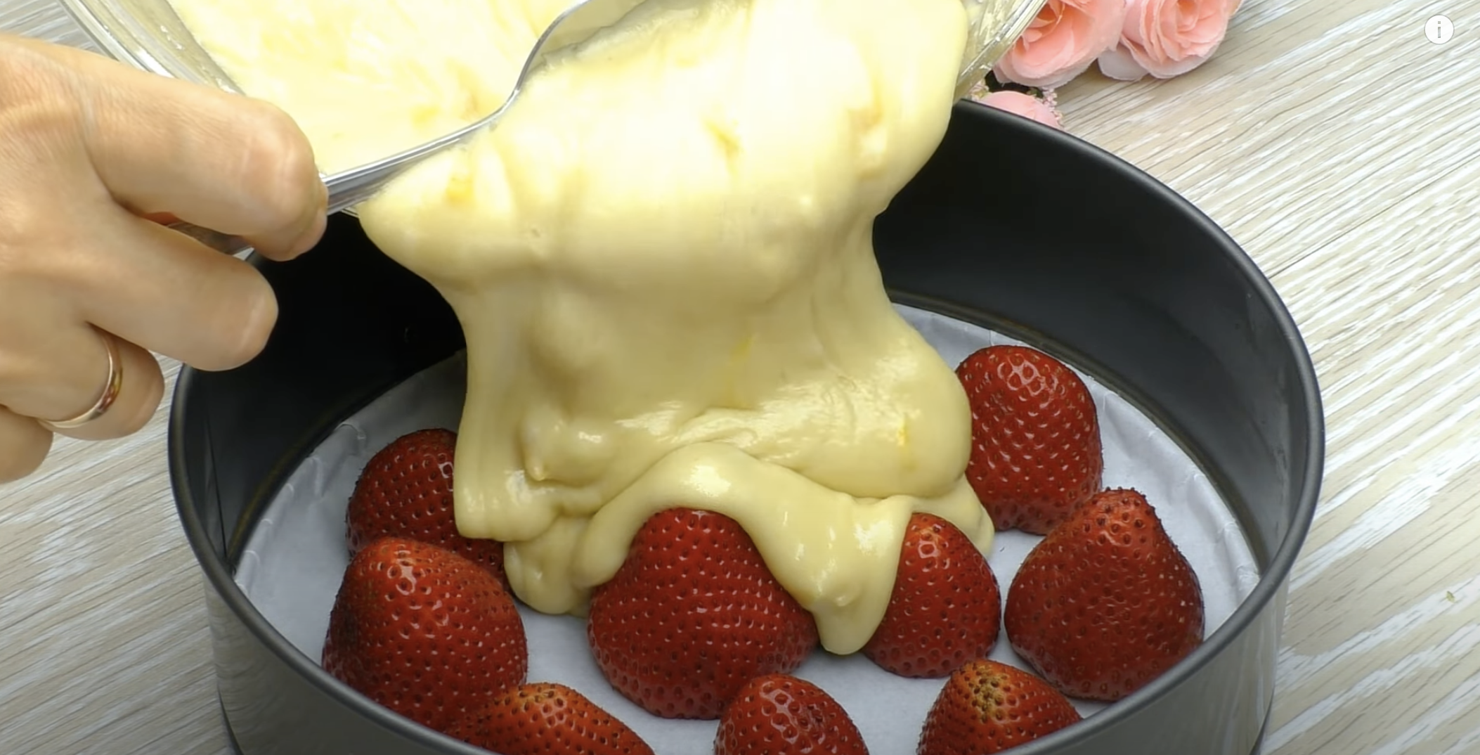 Braškinis pyragas su vaniliniu pudingu: švelnus, gaivus ir labai skanus!