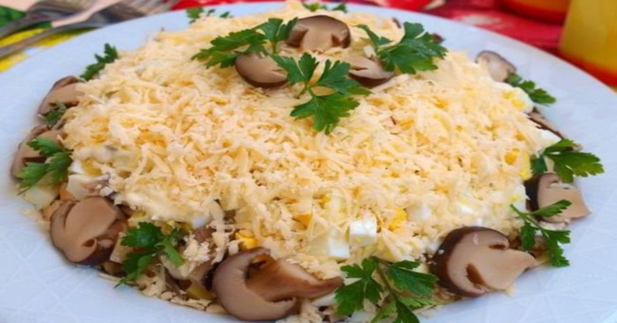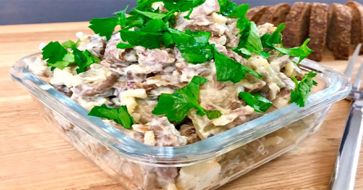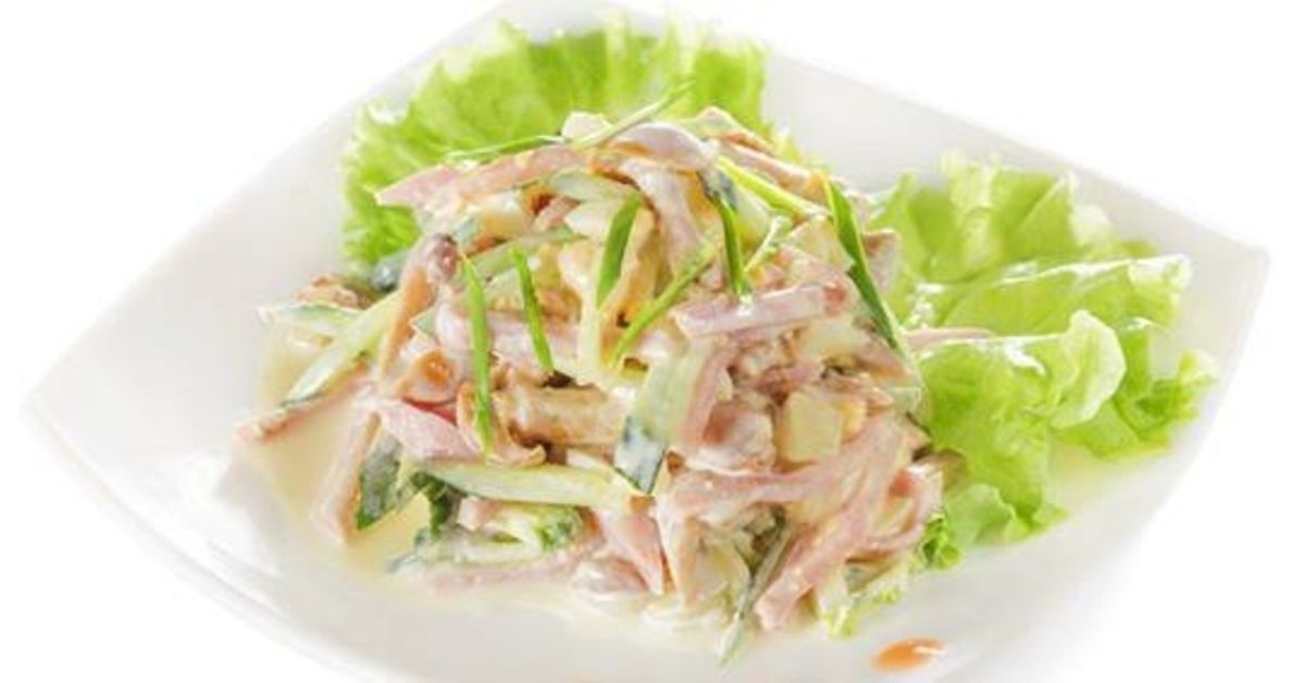 Pasakiškai skanios salotos su grybais, kumpiu ir šviežiais agurkais. Išbandykite!