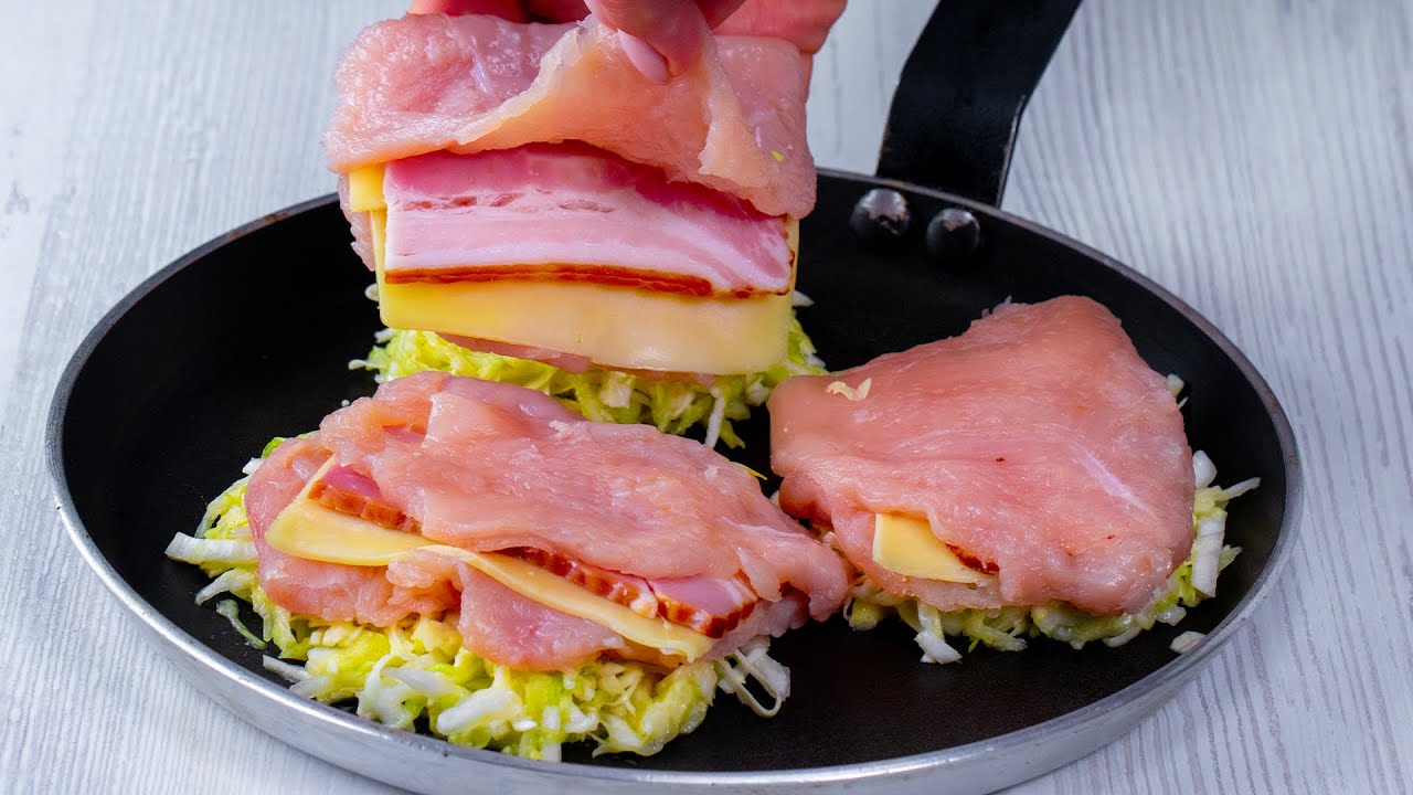 Skani vištienos krūtinėlė, kepta su kopūstais ir šonine. Išskirtinis įprastų ingredientų skonis!
