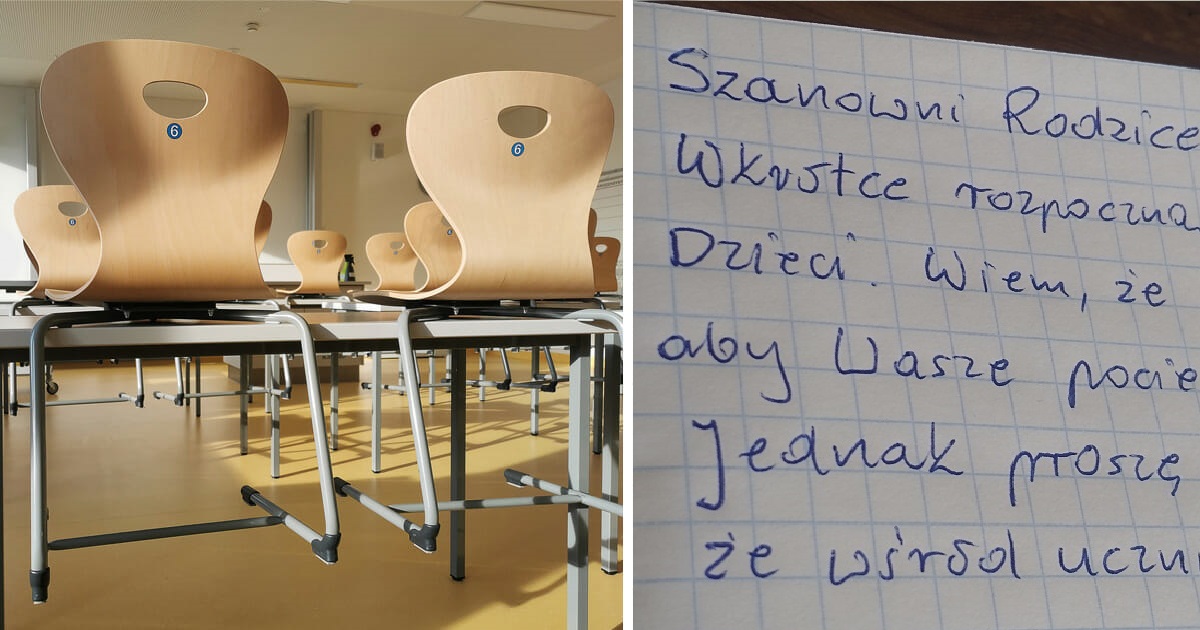Mokytoja, vaikams einant namo, išdalino raštelius. Juos perskaitę, tėvai nenori iš savo rankų paleisti vaikų