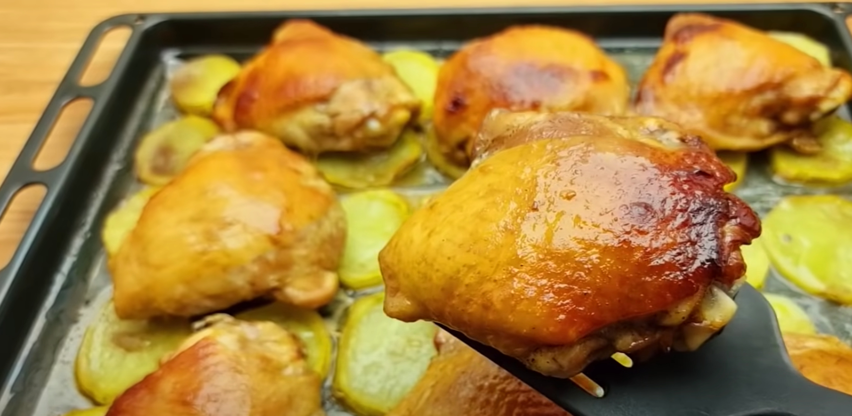 Vištieną ir bulves kepkite vienoje kepimo skardoje. Tai labai skanus, greitas ir nebrangus patiekalas!