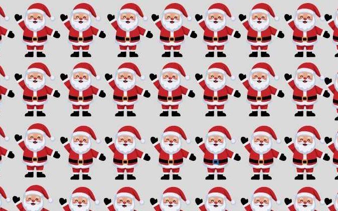Vienas Kalėdų Senelis skiriasi nuo kitų tuo, kad jo diržo sagtis ne geltona, o mėlyna. Jis yra trečioje eilėje nuo viršaus ir šeštas iš kairės. Per kiek laiko tau pavyko jį surasti?